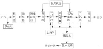 2.1、工藝流程對(duì)于易生物降解的有機(jī)廢水,生物處理是**有效和經(jīng)濟(jì)的處理方法之一,也是肉類(lèi)加工廢水處理采用**普遍的主體工藝。本項(xiàng)目廢水有機(jī)物含量高,易生物降解,B/C 比達(dá)到0.5,可生化性好,因此采用生物工藝處理是**有效**經(jīng)濟(jì)的方法[4]。同時(shí)廢水采取必要的預(yù)處理及物化處理,盡量降低進(jìn)入生物處理構(gòu)筑物的懸浮物和油脂含量,確保生化處理的正常運(yùn)行。