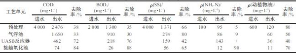 某大型食品集團(tuán)以肉類(lèi)加工為主,是一家集生豬飼養(yǎng)、生豬屠宰加工、低溫冷藏、熟食加工為一體的肉食品加工企業(yè)。企業(yè)總投資人民幣20 303 萬(wàn)元,計(jì)劃年屠宰加工200 萬(wàn)頭生豬,產(chǎn)生廢水6 000 m3/d。生產(chǎn)廢水主要來(lái)源于屠宰前沖洗活性牲畜產(chǎn)生的廢水、屠宰過(guò)程中產(chǎn)生的沖淋廢水、熱燙廢水以及清洗廢水;煉油加工廢水;肉制品加工車(chē)間排出的原料肉解凍水、殺菌水、車(chē)間、設(shè)備沖洗水、消毒水。根據(jù)該企業(yè)加工廢水的性質(zhì)特點(diǎn)及處理要求,采用UASB+接觸氧化工藝處理廢水,處理后達(dá)到排放標(biāo)準(zhǔn)。