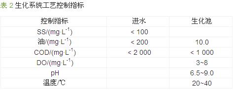生化池設(shè)計:生化池材質(zhì)選用PP板。PP板具有密度小、易焊接和加工,優(yōu)越的耐化性、耐熱性及耐沖擊性,無毒、無味,是目前**符合環(huán)保要求的工程塑料之一。其廣泛應(yīng)用于耐酸堿設(shè)備、環(huán)保設(shè)備、廢水、廢氣排放設(shè)備的制作〔5, 6〕。生化系統(tǒng)工藝控制指標(biāo)見表 2。